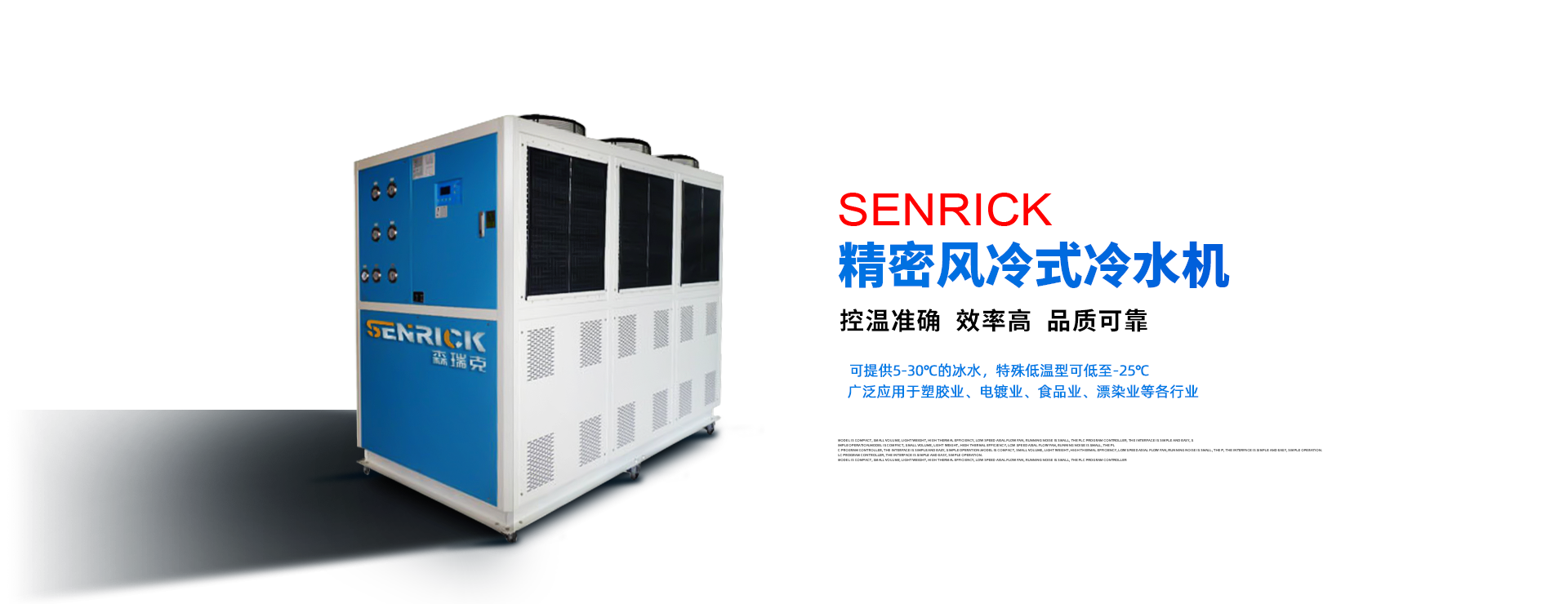 1.行業(yè)靠前——多項(xiàng)行業(yè)技術(shù),造就低噪、節(jié)能、效率高的制冷系統(tǒng),無懼嚴(yán)寒酷暑,無慮磨損腐蝕,維護(hù)便利。2.全mian智能——5英寸高清真彩觸摸屏,實(shí)現(xiàn)機(jī)組全mian動(dòng)態(tài)監(jiān)測。定時(shí)啟停,智能防凍,效率高節(jié)能,故障自我診斷,保養(yǎng)自動(dòng)提示。3.精益求精——全不銹鋼水泵系統(tǒng),遠(yuǎn)離銹蝕之憂,著ming品牌配件,,細(xì)節(jié)精心處理,打造藝術(shù)品般的產(chǎn)品。